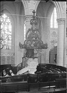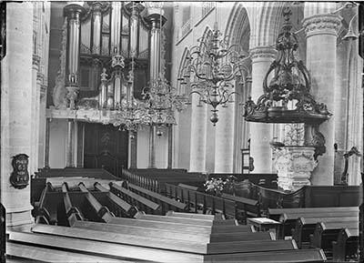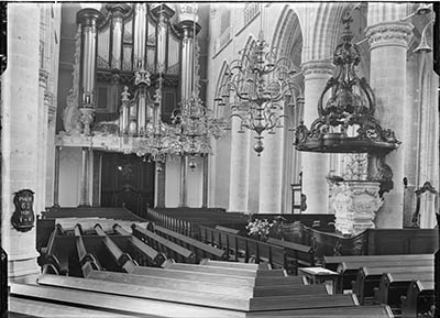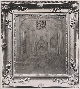 Schilderij van het nterieur van de vroegere synagoge aan …