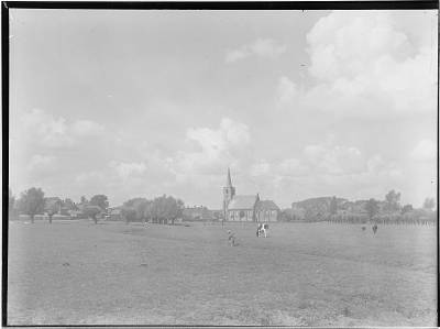 Landschap met boer, koe en kerk van Heerjansdam