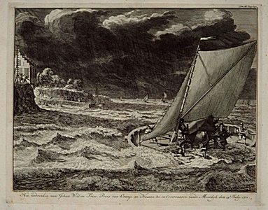 Schilderij door Aart Schouman van houtvlotten op deVlij, …