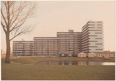 Luchtfoto naar het oosten gezien. Linksonder de Hooikade, …