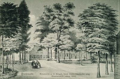 Tekening van de Palingstraat richting Groothoofdspoort.