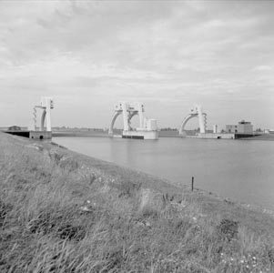 Stuw- en sluizencomplex Hagestein, gezien naar het …