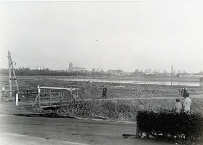 De spoorwegovergang naar Krispijn gezien in noordelijke …