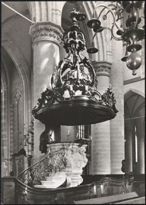 Preekstoel in de Grote Kerk.