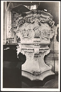 Detail van de preekstoel in de Grote Kerk.