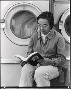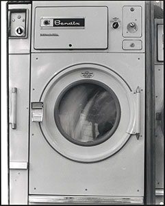 Vrouw bij een wasmachine