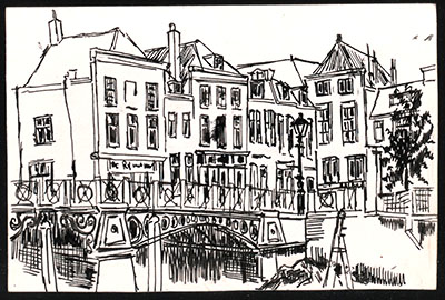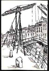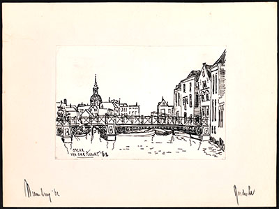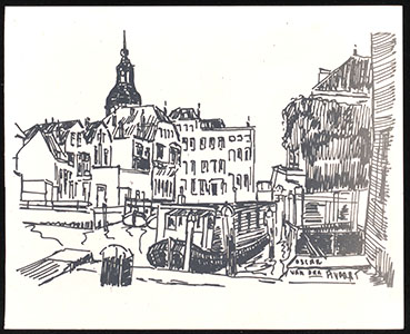 Tekening van de Nieuwbrug over de Wijnhaven richting …