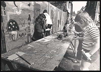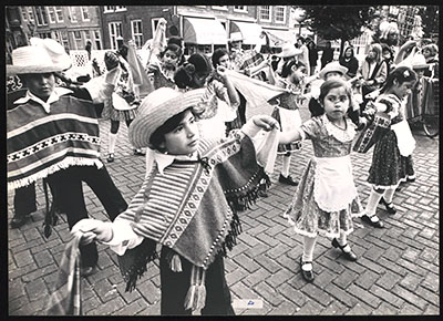 Optreden van verklede kinderen op het Statenplein. Op de …