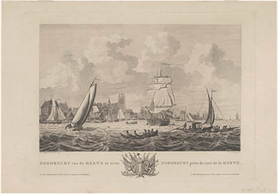 Gezicht op Dordrecht vanaf de Oude Maas op Grote Kerk en …