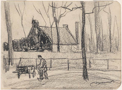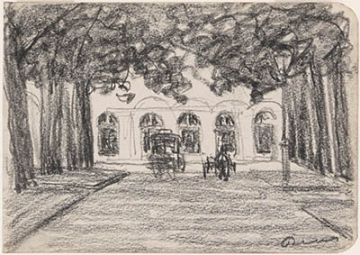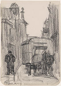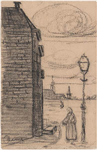 Tekening van de Stationsweg richting station.