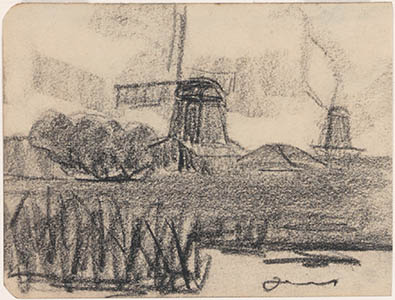 Landschap met twee molens.