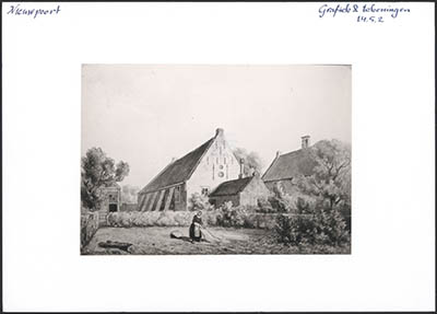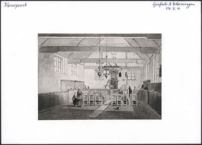Tekening van de Hervormde Kerk aan de Binnenhaven in …