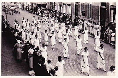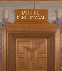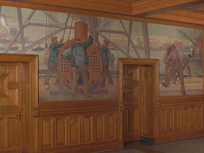 Wandschildering in de Kennedyzaal van het stadhuis.