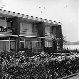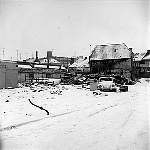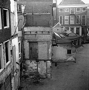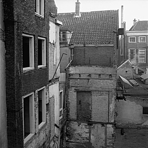 Achterkant Gravenstraat. Het huis met de brandtrap staat …