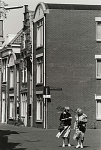 Twee toeristen op de hoek Augustijnenkamp Achterklooster