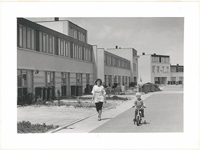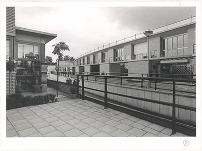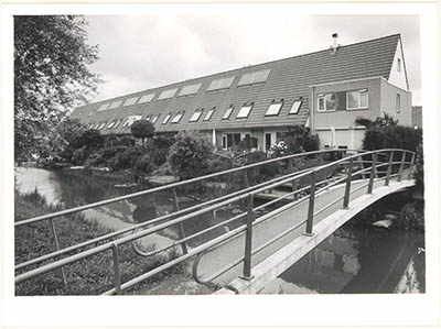 Voetgangersbrug vanaf de spoordijk naar het Rietveld-erf.
