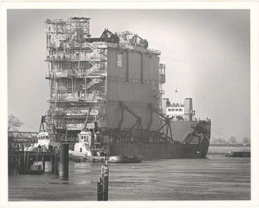Transport van een bij Grootint gebouwd boorplatform.