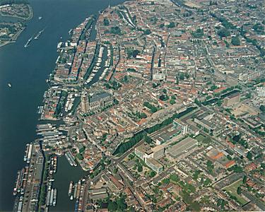 Luchtfoto van het centrum van Dordrecht gezien uit het …