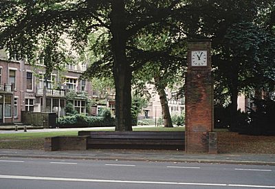 Stenen bank met elektrische klok op de Vrieseweg aan de …