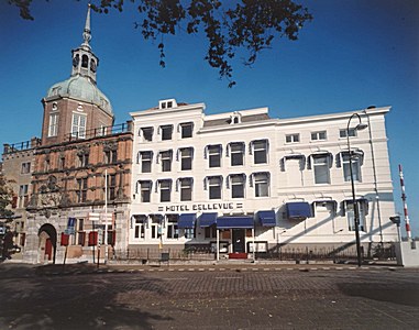 De Groothoofdspoort en Hotel Bellevue.