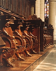 Koorbanken in de Grote Kerk.