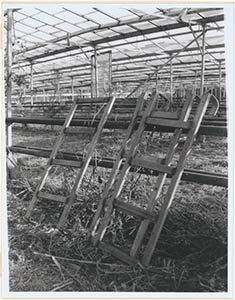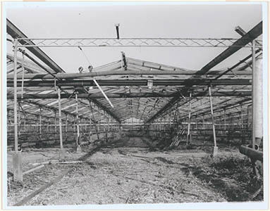 Gebroken ruit van de kas op rozenkwekerij Van Heeren …