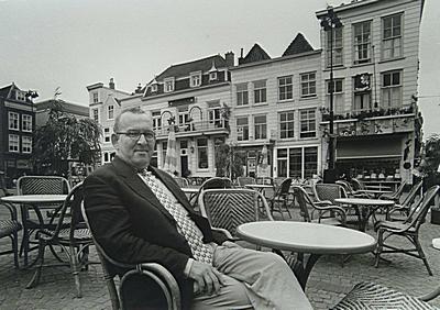 Wethouder Dirk ten Veen op een terras op het Scheffersplein