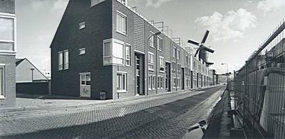 De nieuwbouw aan de Noordendijk met de molen Kijck over …