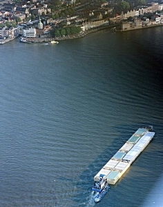 Luchtfoto van een duwbak op de Oude Maas t.h.v. het …