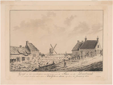 Dijkdoorbraak aan de Arkelse dam bij Kedichem.