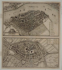 Plan van Dordrecht met inschrift 'Dordracum' en links het …