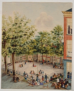 Tekening in kleur van het Scheffersplein door A.M.A.W. …