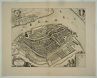 Plattegrond van Dordrecht, tussen 1640-1647 met bovenin …