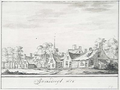 Tekening dorpsgezicht met kerk te Zwijndrecht
