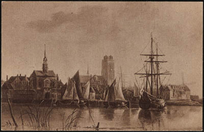 Dordrecht vanuit Papendrecht, omstreeks 1660