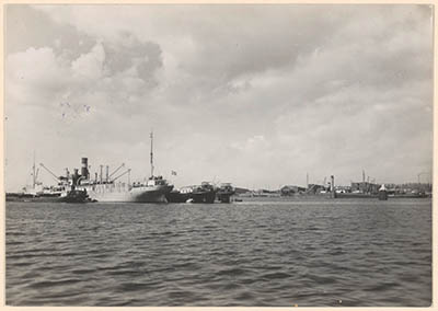 Het lossen en laden van schepen in de Wilhelminahaven.
