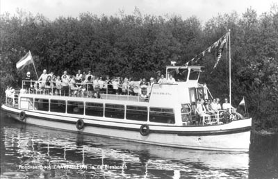 Biesbosch rondvaartboot de Zilvermeeuw met rechtsonder …