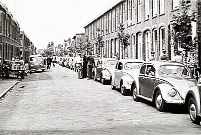 Opstelling van Volkswagens in de Tesselschadestraat, waar …
