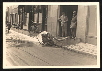 Leegpompen van de kelder in de Lange Breestraat.