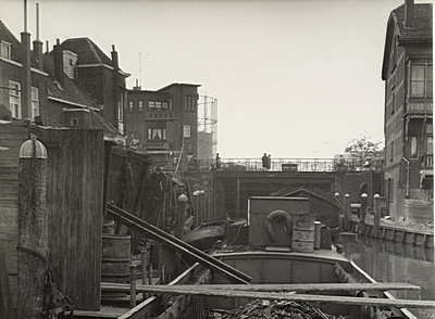 Hulpsteiger tussen de spoorbrug en de verkeersbrug over …