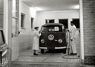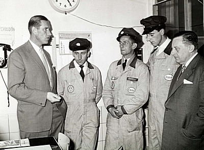 Personeel van garage Ames op de Brouwersdijk.