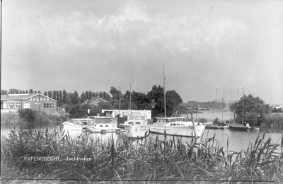Jachthaven in Papendrecht. Links de bromfietsfabriek …