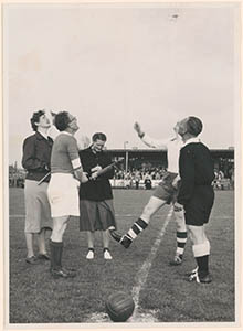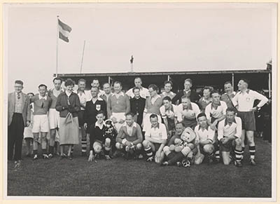 Een voetbalwedstrijd op het D.F.C.-terrein aan de …