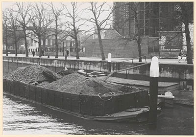 Vrachtboten in het Maartensgat langs de Lange Gelderse kade.