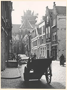 De Grotekerksbuurt, gezien naar de Grote Kerk, waarvan de …