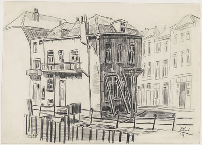 Bouwvallige huizen op de kop van de Wijnstraat.