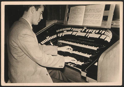 Componist en dirigent Otto Deden aan het klavier van het …