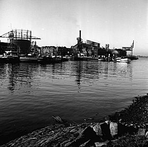 Papendrechts veer met de gasfabriek en gashouder op de …