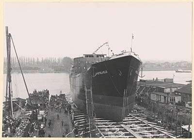 De tewaterlating van het motorschip Amstelveld op de …