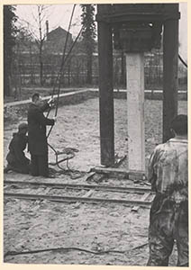 De eerste paal geslagen door burgemeester J.A.H.J. van …